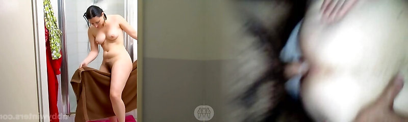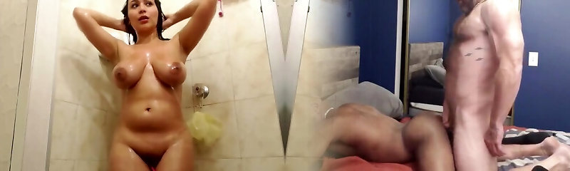While I was taking a bathroom, my stepdaughter goes into the shower for me to fuck her small pussy and milk her big milk cans