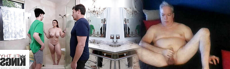 Nerdy Guy Looses His V-card With His Slutty Curvy Busty Blonde Stepmom In the Shower