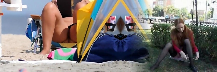 Nubile Couple Fucking in a Tent on a Public Beach
