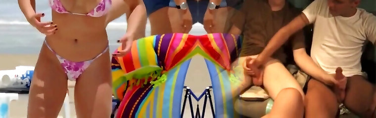 Beach group sex with skinny sluts and big trouser snake guys