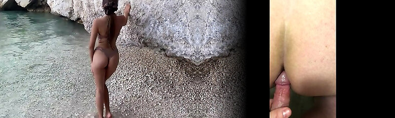 Super-naughty couple on vacation got to a wild island to have sex on the beach POV