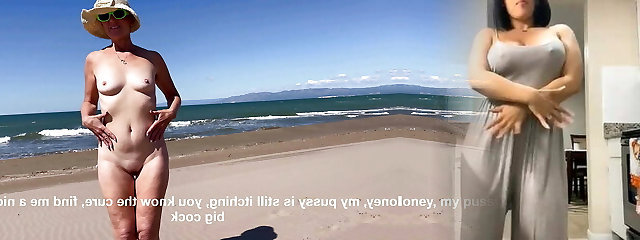 Exhibitionist Wife #6 And #9 - Lana Is A Milf Showing Off Her Huge Bra-stuffers, Big Clit And Meaty Cunt At The Nude Beach For Spycam Hubby And Horny Strangers! 18 Minute With Lana Ess