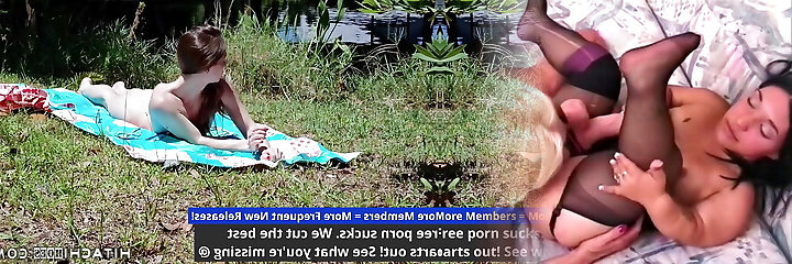 Sunbathing Mira Monroe Has Multiple Intense Vibrator Orgasms By The Lake At HitachiHoes.com