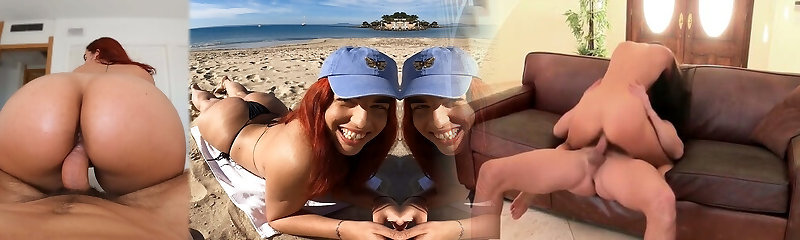 Redhead babe rests on the beach and then gropes stranger's cock