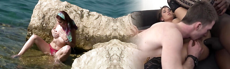 Anal Romp and Double Penetration in the Shore for Beachgoer Sunny Jay in MMF Threesome