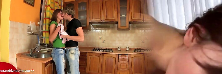 Horny couple alone in kitchen make sex and endup facial