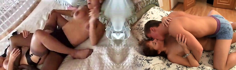 Dazzling cougar with big globes getting fingered then humped hardcore in threesome sex