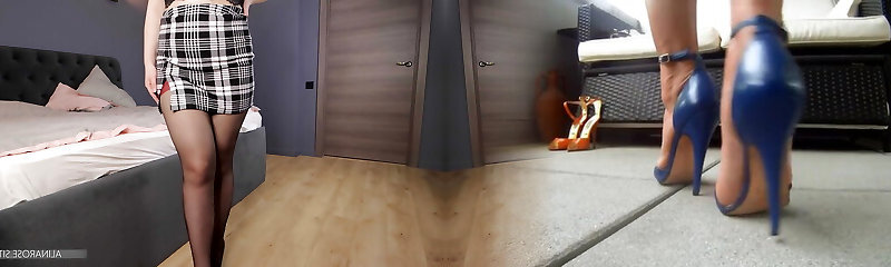 Office Secretary Handjob on Her Legs in Pantyhose High Stilettos