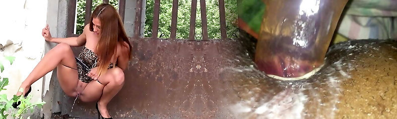 Girl In Mini Skirt And Sexy High-heeled Shoes Masturbates On The Stairs!
