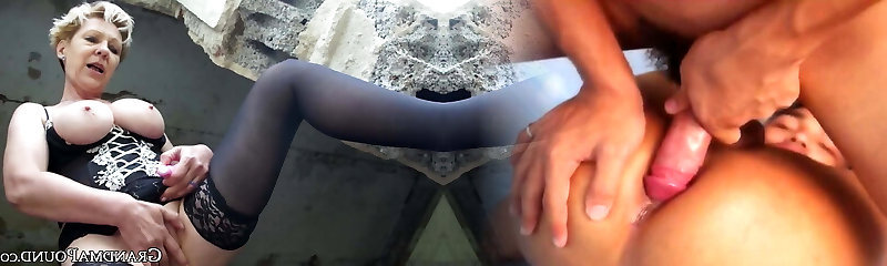 Insatiable grandma fucks pussy with dildo in outdoor solo