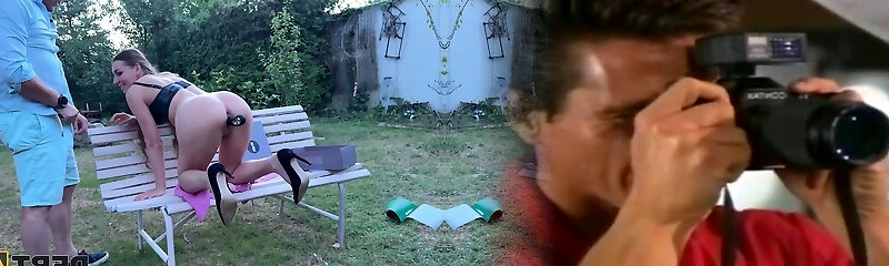 Yoha wearing high heels gets penetrated outdoors by the pool