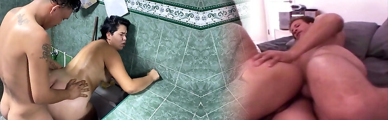 Ginormous titties Asian amateur joins her hubby in the shower for an erotic bath