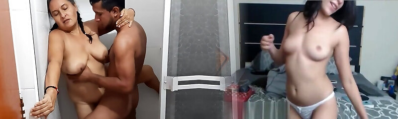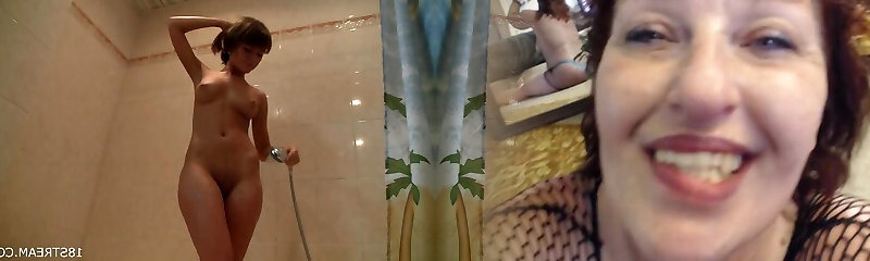 Old female with high fucky-fucky drive enjoys watching young man taking a shower before having sex