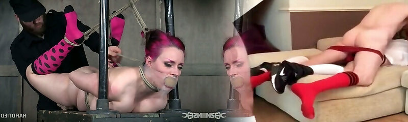 Ultra-kinky mistress Fox Acecaria puts on strapon and punishes suspended lush submissive