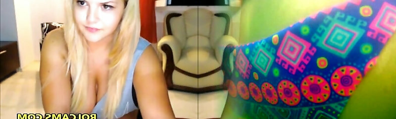 Chubby light haired fuckfest doll presents steamy solo on sofa