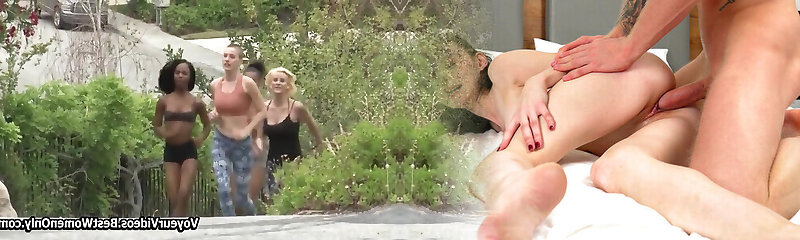 Experience an erotic 3some with a crazy stunner and your girlplaymates with hard cocks