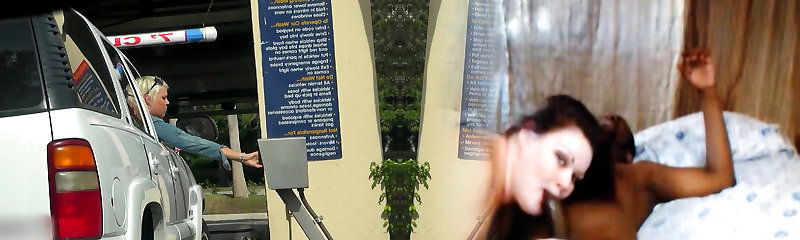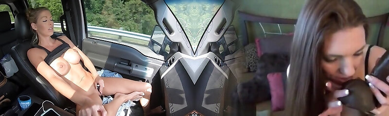 Busty ultra-cute milf gets picked up in the truck wash and flashes her tits