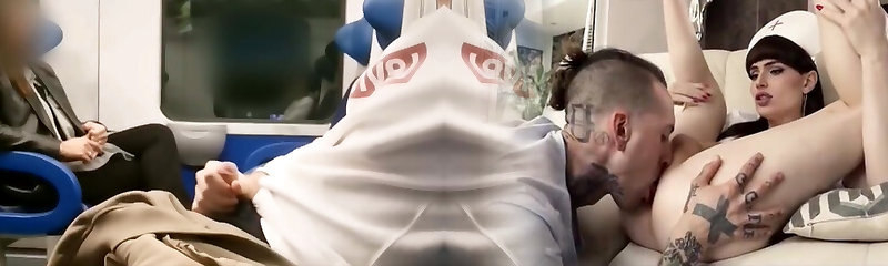 Crazy tattooed lady Esme plays with her showed saggy big tits