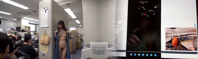 Kinky alone nerdy office tramp in pink blouse shows her bald pussy