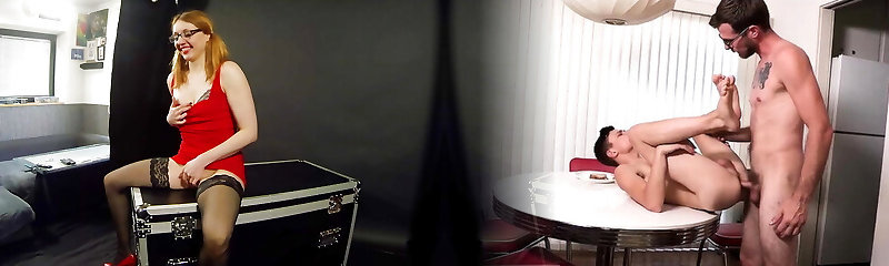 step sister Female Domination teasing stepbrother, cbt, wedging HUGE DILDOS deep in his ass, butt plug, glass faux-cock, cumshot