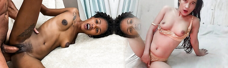 Nice globes ebony amateur duo babes suck and fuck a white cumbot