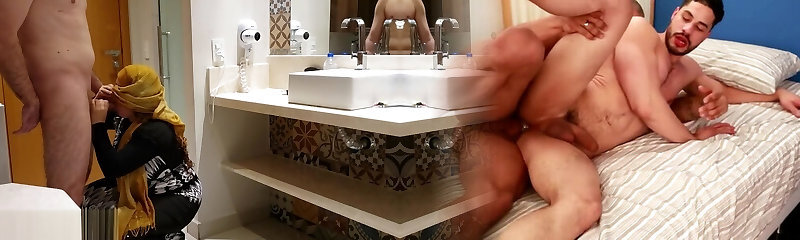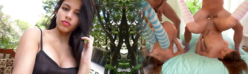 Aroused latina bitches service lone dude with their burning fuck-holes in trio