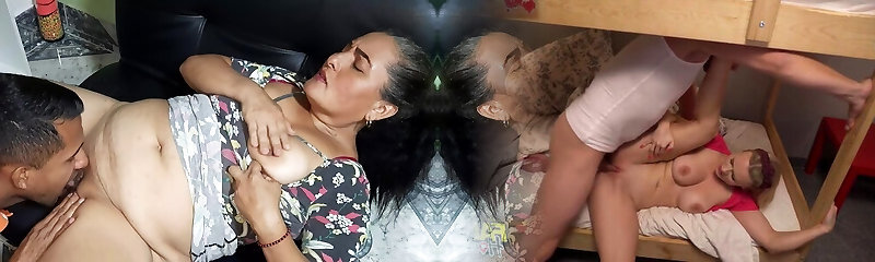 Latina enjoys 3some with her boyfriend and MILF mom