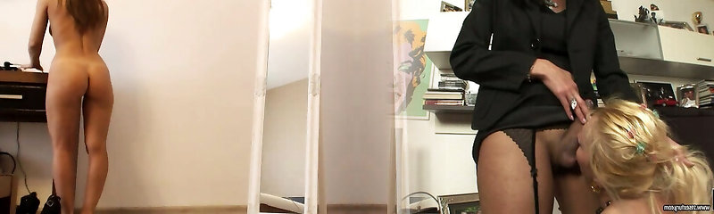Alluring brunette with oiled warm ass licking massive balls passionately