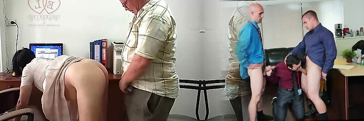 Mature amateur Plumper pounded by 2 horny guys at an office