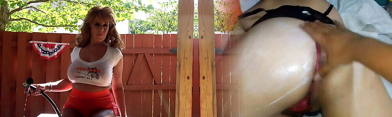 Redhead slut wearing fishnet pantyhose gets anal invasion fucked in hardcore clip