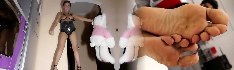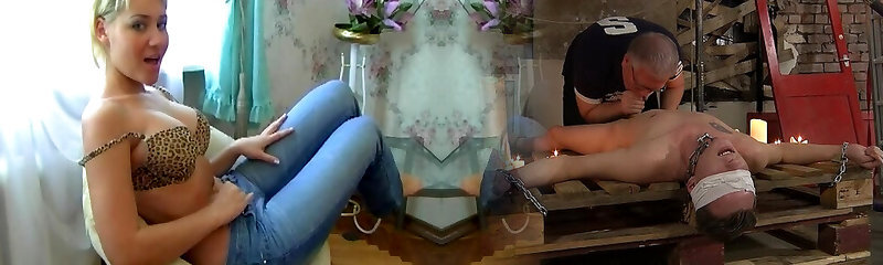 Victim worship beautiful feet of blonde goddess