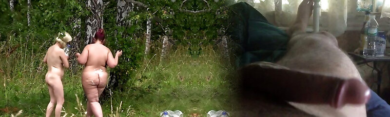 naked chicks in the forest. peeping, hidden camera