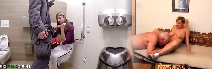 Cute Russian teen in the toilet puts cock in her gullet
