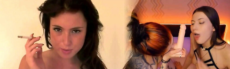 Two girls lesbians smoking and toying in bed