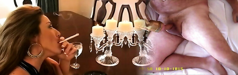 Messy whore fascinating her man while smoking a cigarette