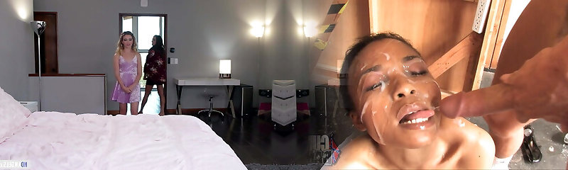 Huge white dildo deep in the ebony slit