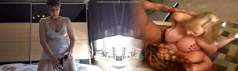 Old German chick with huge innate breasts playing with her sex toy