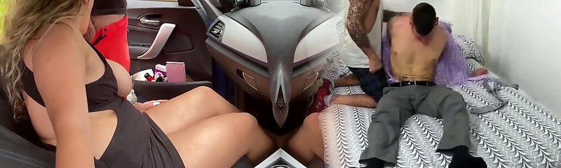 Lesbian fucked mature milf in the car. Big melons and enormous ass in sexy underwear. POV.