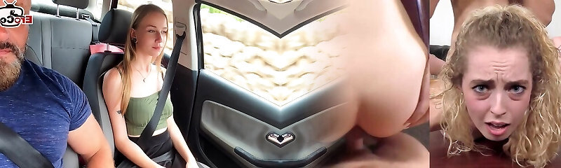 Enormous bitchy chick gets fucked really intensively by her driving instructor in his car