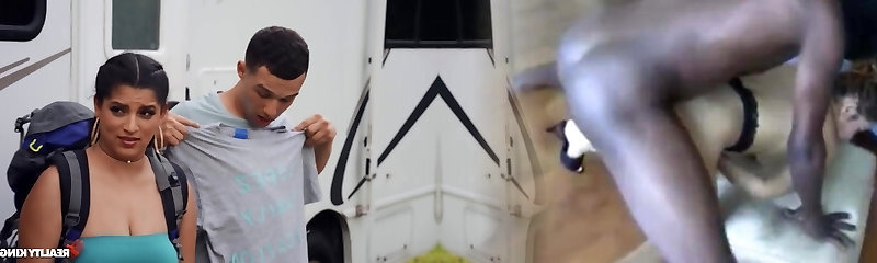 Hot horny big ass SSBBW Milf caught publicly in van with black guy munching pussy & fuck machine