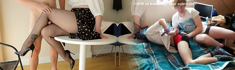 Voyeuristic CFNM mistresses grinding subject’s rod