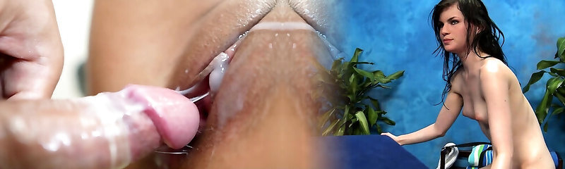 Juicy small asian cunny gets penetrated with a big rod, that creampies it