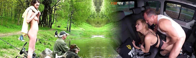 Stunning redhead Russian college girl displaying her goodies by the lake