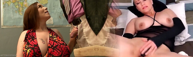 Fantastic auburn prof Cherie Deville showcases her big melons before giving head
