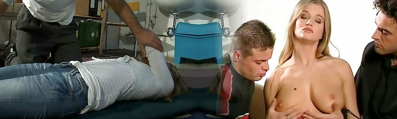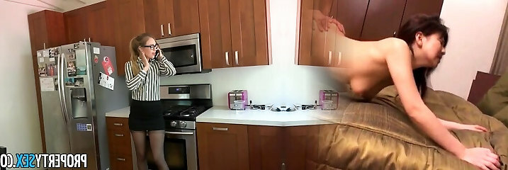 Sweet teen lady gets doggie fucked two guys over in at home threesome Action