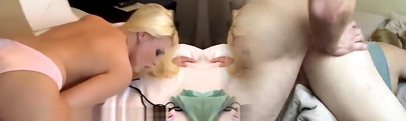 Blonde babe gets oral while other blonde fellates cock