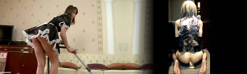 Redhead asian Marina Igawa in maid costume gets her hairy cootchie fucked and cum shot in