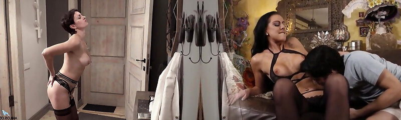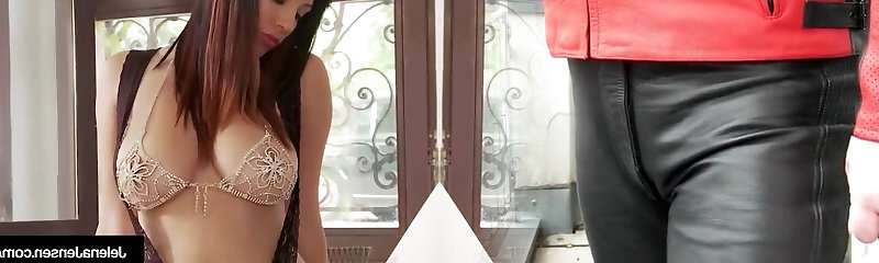 Dark-haired Gabrielle Gucci enjoys while being fucked by her man