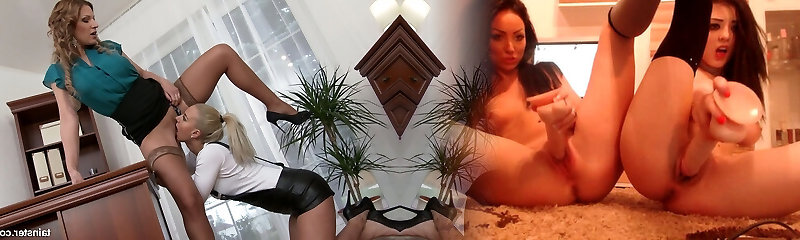 Big Tits Brunette Boss in Super-fucking-hot Lingerie and Black Stockings teases and seduces her fresh Blonde Secretary for Lesbian Sex