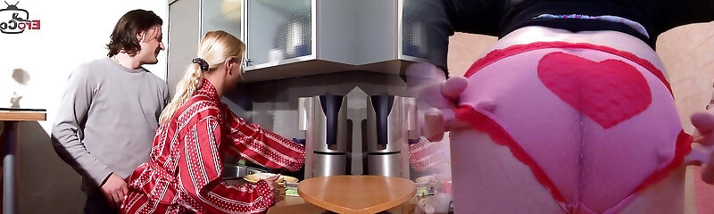 Meaty Plumper whore eats ass and fucks anally in the kitchen